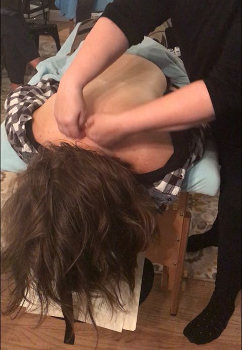The Raindrop Oils are then applied to your spine (dropped on like a raindrop) and then various techniques are used to get the oils into your spine like feathering, vitaflex, circular applications and more. There is a little tissue pressure but nothing that is uncomfortable. This entire technique takes nearly an hour to give and is incredibly relaxing, many people fall asleep during it. You will smell amazing afterwards too – like a spa! After the oils are applied, we put a hot compress on your spine for 5 minutes to drive the oils deep into your tissue. This is relaxing as well! Then we sit you up to help you get oriented and serve you a glass a water to help you stay hydrated. It really is a unique and wonderful experience that is beneficial to the body in many ways!