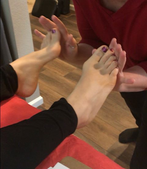 The Raindrop Technique starts with balancing your energy field, using an essential oil blend called Valor on your shoulders and feet. The CRTS technician then will use the Vitaflex technique starting with your feet. This technique applies all of the Raindrop oils to the spinal reflexology points on your feet and sends the oils up those specific nerves to your spine. Essential oils are electromagnetic and love to travel along the nerves. They encourage the spine to relax and decompress. We commonly see people grow in height up to an inch after a Raindrop. Ask your technician to measure you before and after so that you can see how much your spine decompresses!
